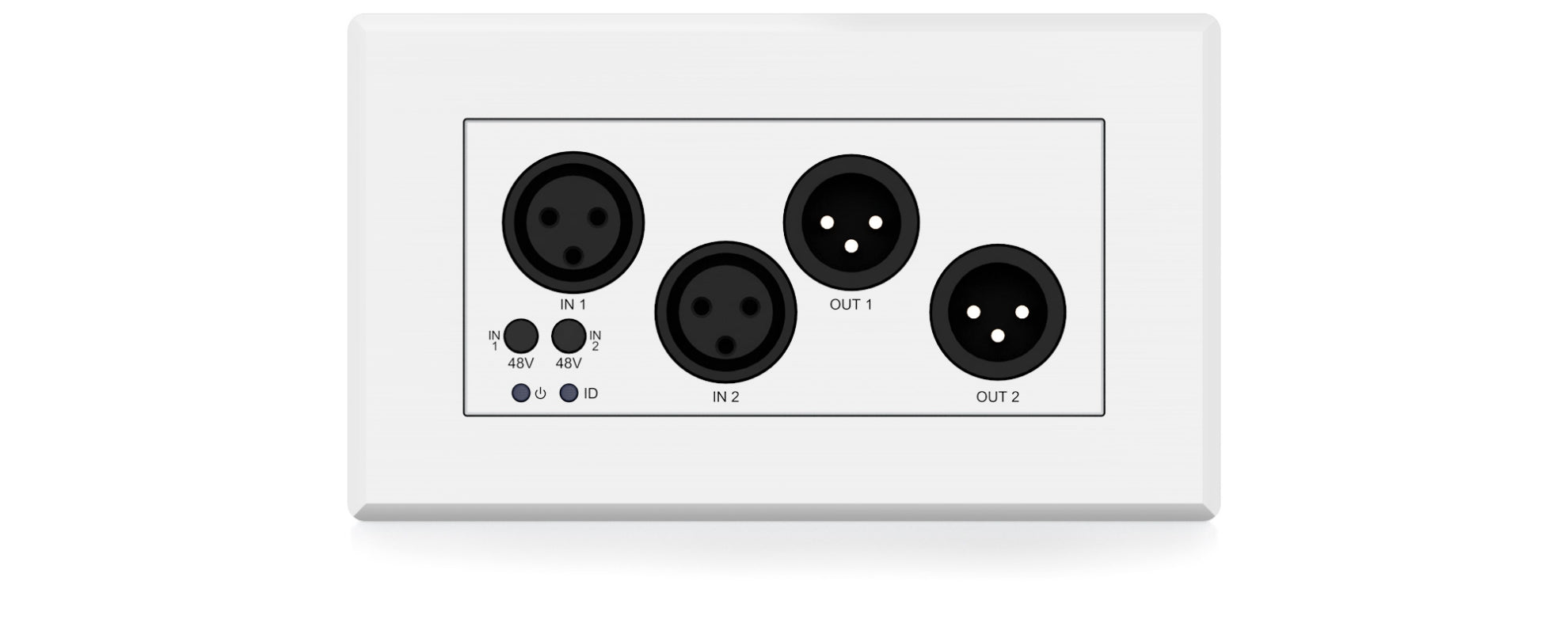• Dante® network wall plate interface for 2 x audio inputs and 2 x audio outputs