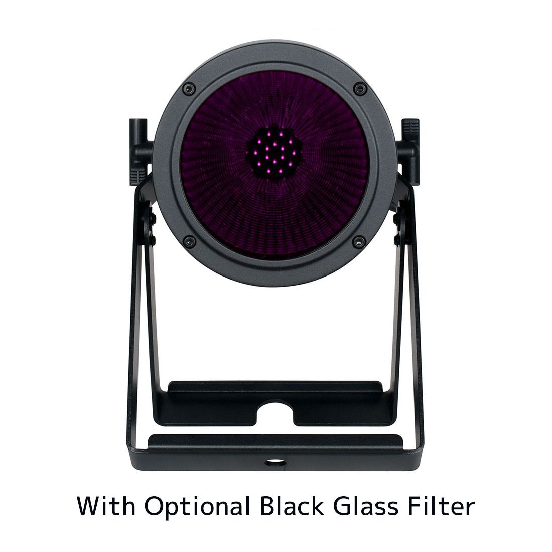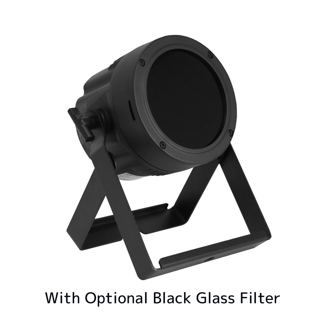 Black Glass Filter (see below in Related Products) - For the Prisma Par 20 and Prisma Par 50 fixtures. It will create a complete blackout effect, only allowing UV rays to penetrate, it is easy to install within seconds.