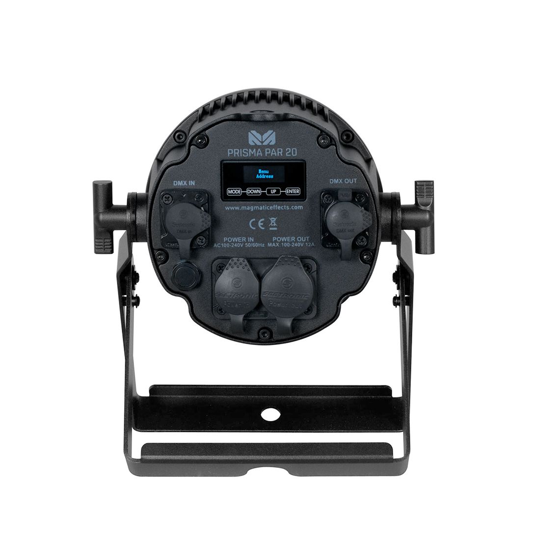 The PRISMA PAR 20™ is an exterior IP65 rated UV wash par luminaire that produces 365nm peak true UV output with zero visible light. Features include a 20 degree narrow beam angle, a user friendly digital 2.5 inch LCD touch screen control panel, intuitive DMX-512 and RDM control, dual adjustable mounting yokes, a durable aluminium housing, IP65 DMX 5pin XLR and locking power in/out connections.
