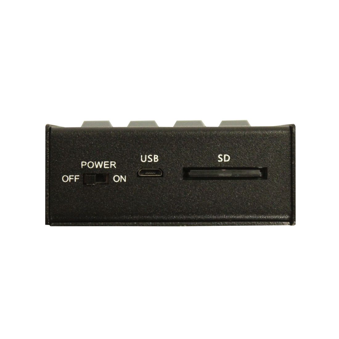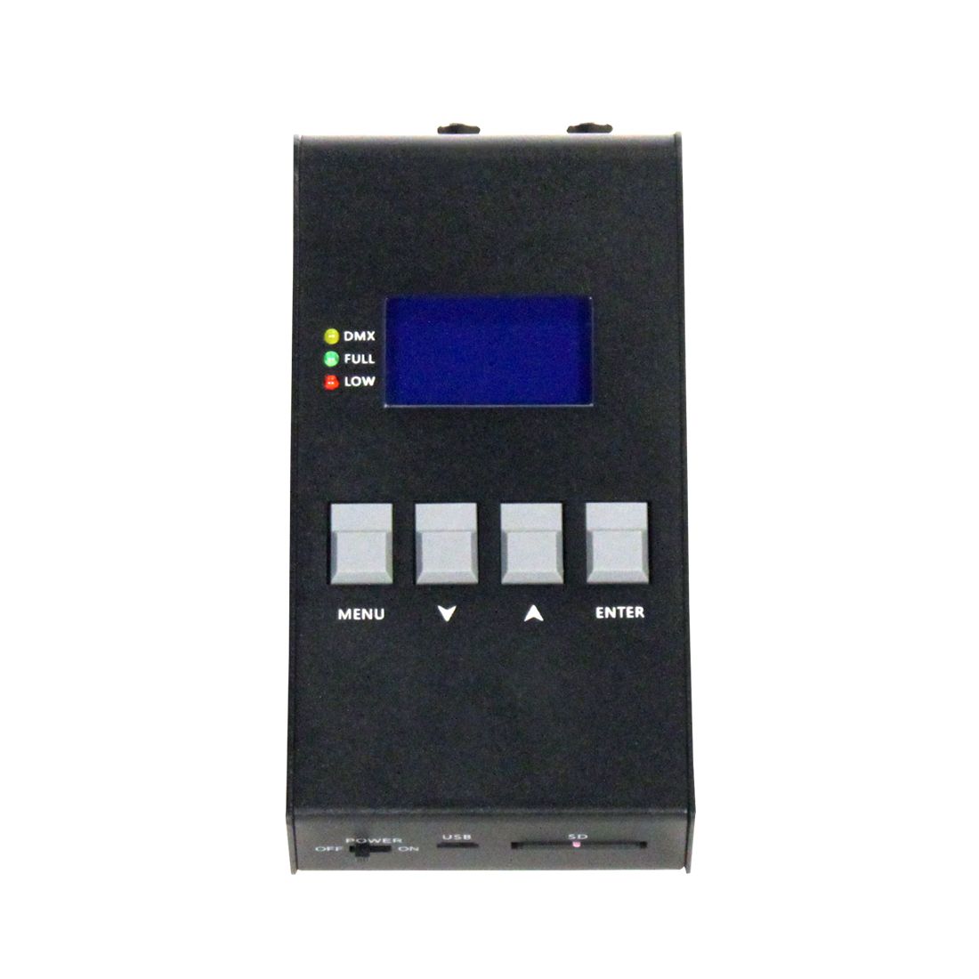 The A loader HH™ is a battery powered hand held software uploader device used to update Elation compatible lighting fixtures. Easily upload a software update to an Elation lighting fixture by connecting the uploader to the fixture using a 3pin or 5pin DMX cable (not included). Elation software updates (not included) are stored on a SD card (included) and inserted into the uploader. A loader HH™ features an LCD display, 4 push button control panel, a SD card slot, 3pin and 5pin XLR DMX outputs, an On/Off switch and includes a 12VDC external power supply and blank SD card.