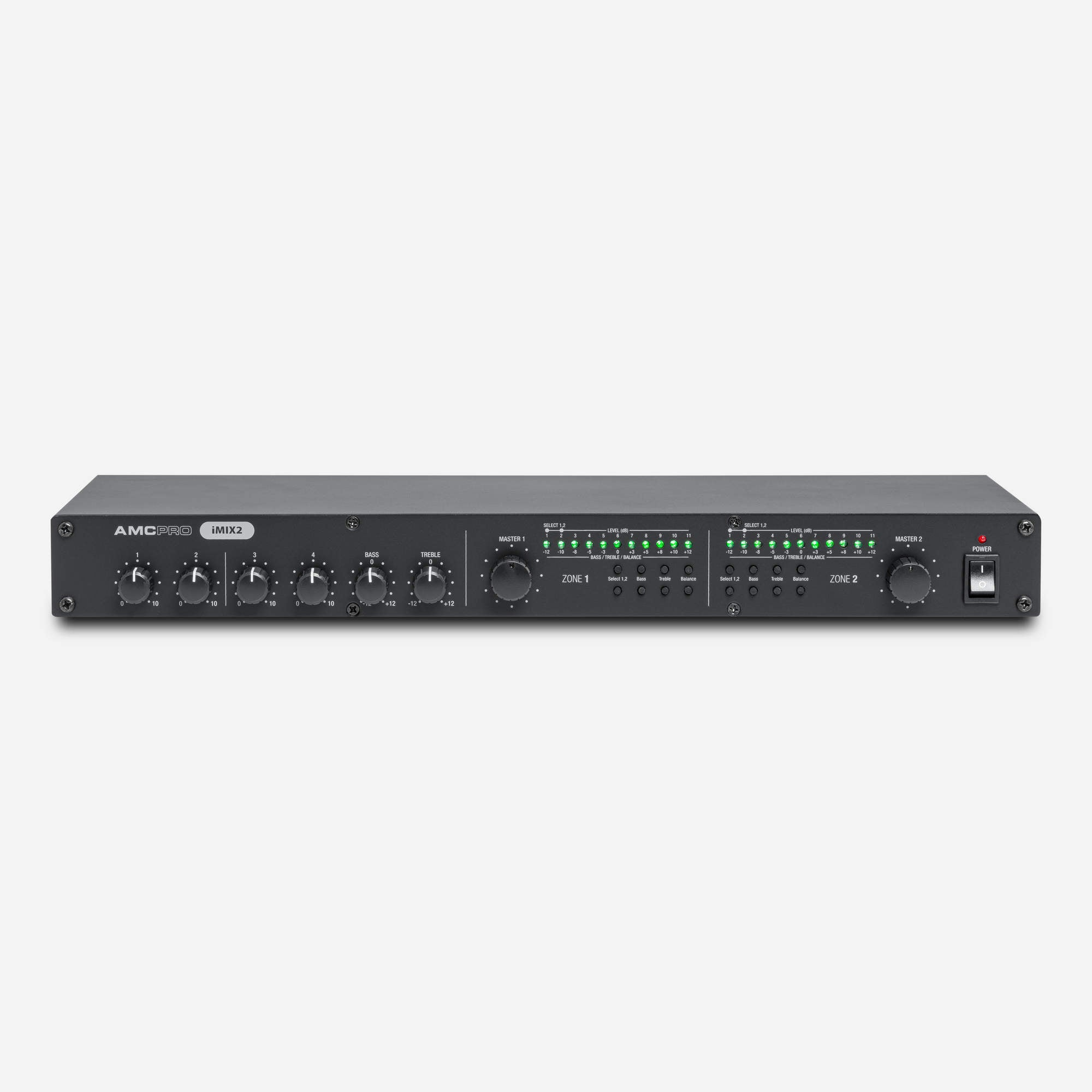iMIX 2 – two-zone stereo mixer preamplifier with universal balanced Phoenix and stereo RCA inputs.