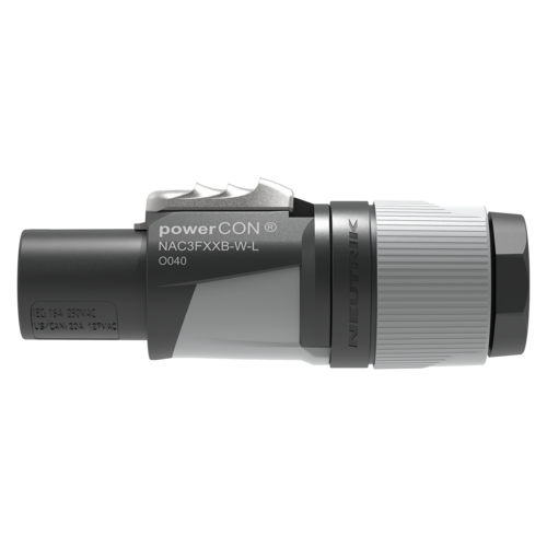 The powerCON FXXA/FXXB is a single phase (3 conductor) lockable power connector with Circuit Breaking Capability when mated with powerCON XX Series receptacles.