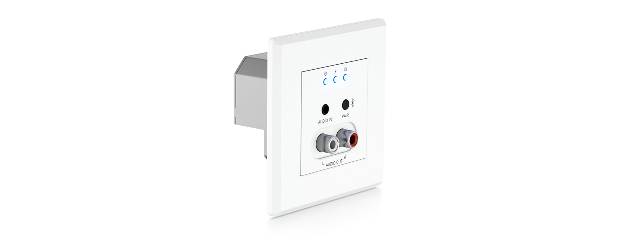 • Dante® network wall plate interface for Bluetooth and analogue L/R audio inputs, and L/R audio outputs