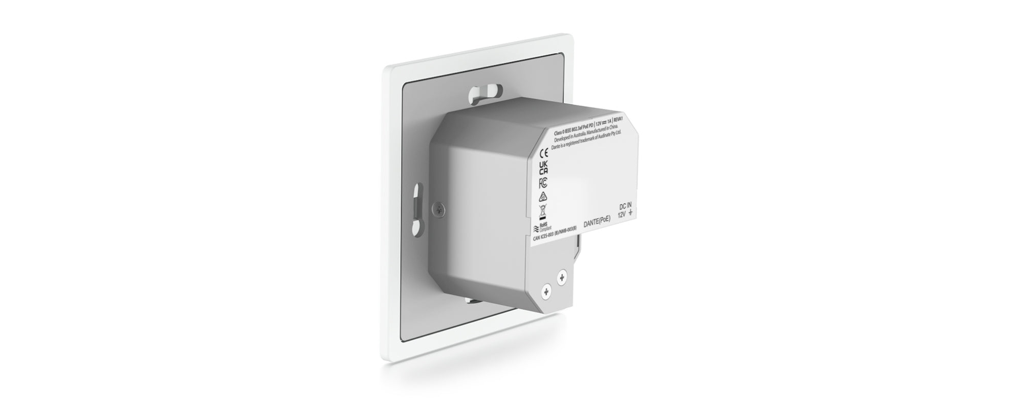 The DA11ABL-WP-EU-V2 is a plug & play device that is powered using PoE (Power over Ethernet), or via 12V power supply, offers support for AES67 RTP audio transport and magnetic faceplate design allows for both UK & EU backbox compatibility. The DA11ABL-WP-EU-V2 is the ideal BYOD interface to allow any Bluetooth device to stream audio wirelessly to a Dante® audio system.