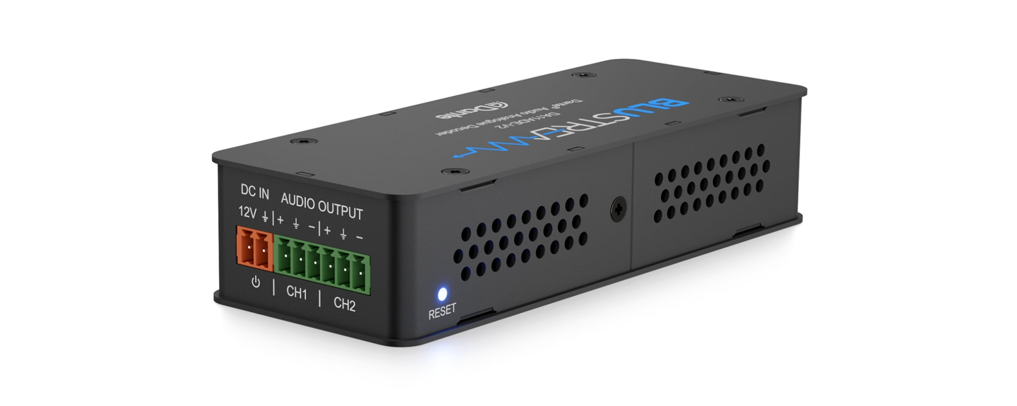 • Decodes two Dante® digital signals to two unbalanced or balanced analogue audio channels