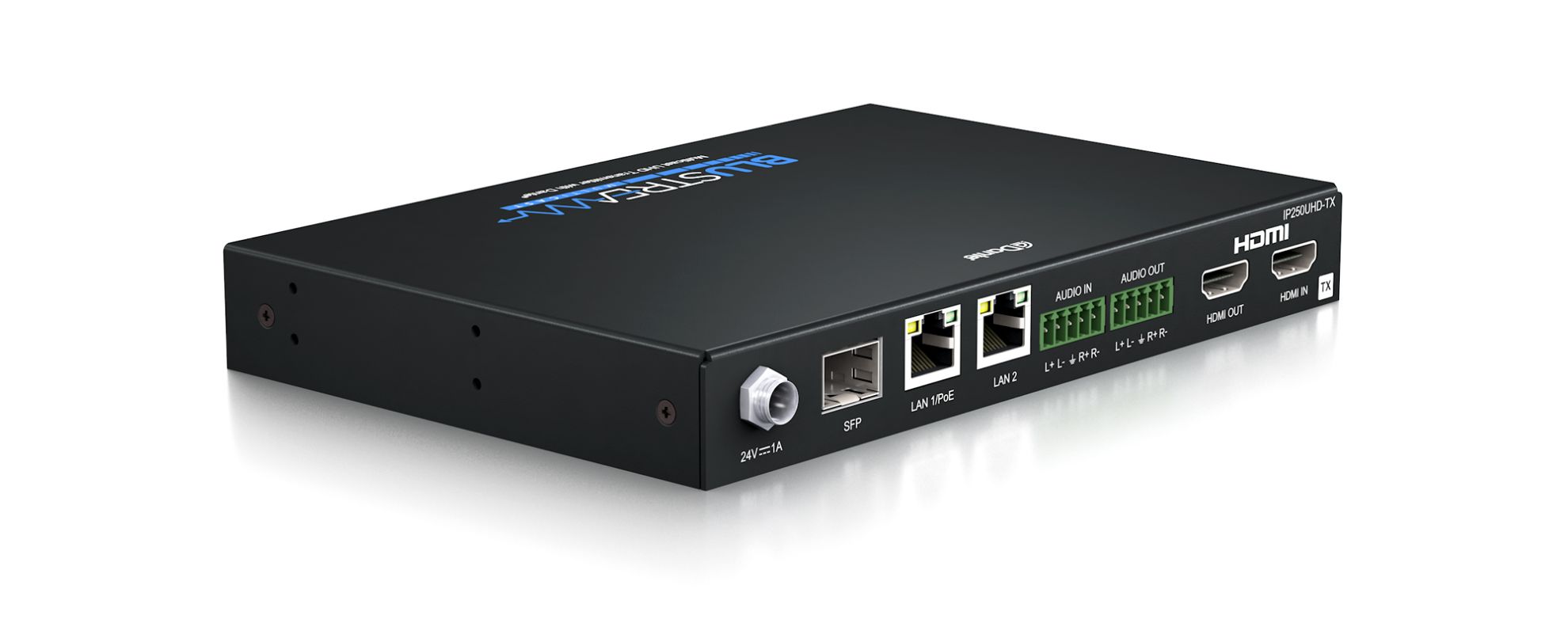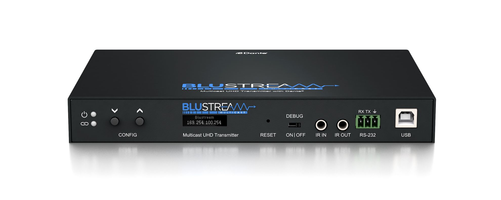 • In-built 2ch Dante transmitter for breakout of audio from HDMI source or local analogue audio input