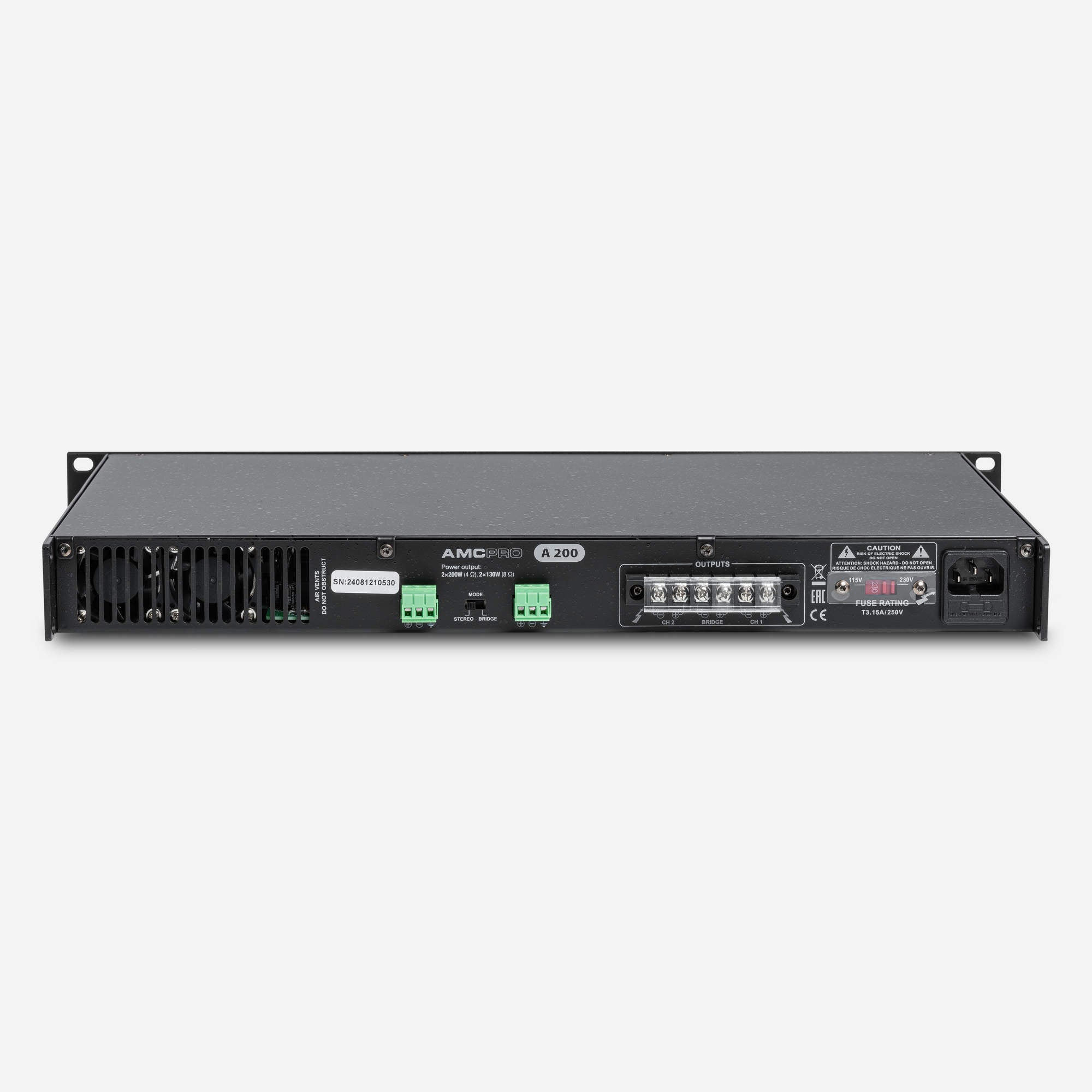 A200 is 2-channel power amplifier with 200 W rated power per channel at 4Ω.