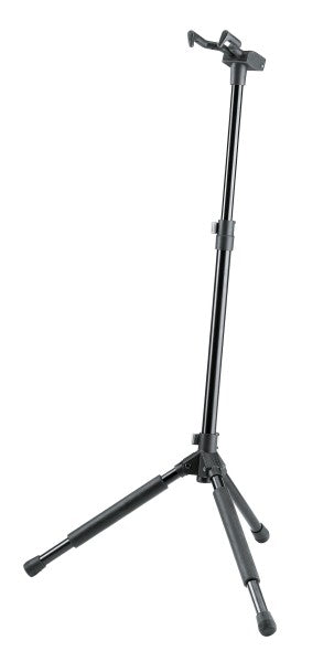 folds small; patented flexible hooking-in and clamping system; studs at support arms provide extra protection; anti-twist feature on the extension rod; suitable for asymmetric guitar necks