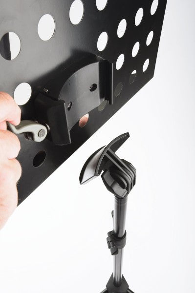 K&M 118/4 chrome stand, black wooden desk orchestra music stand