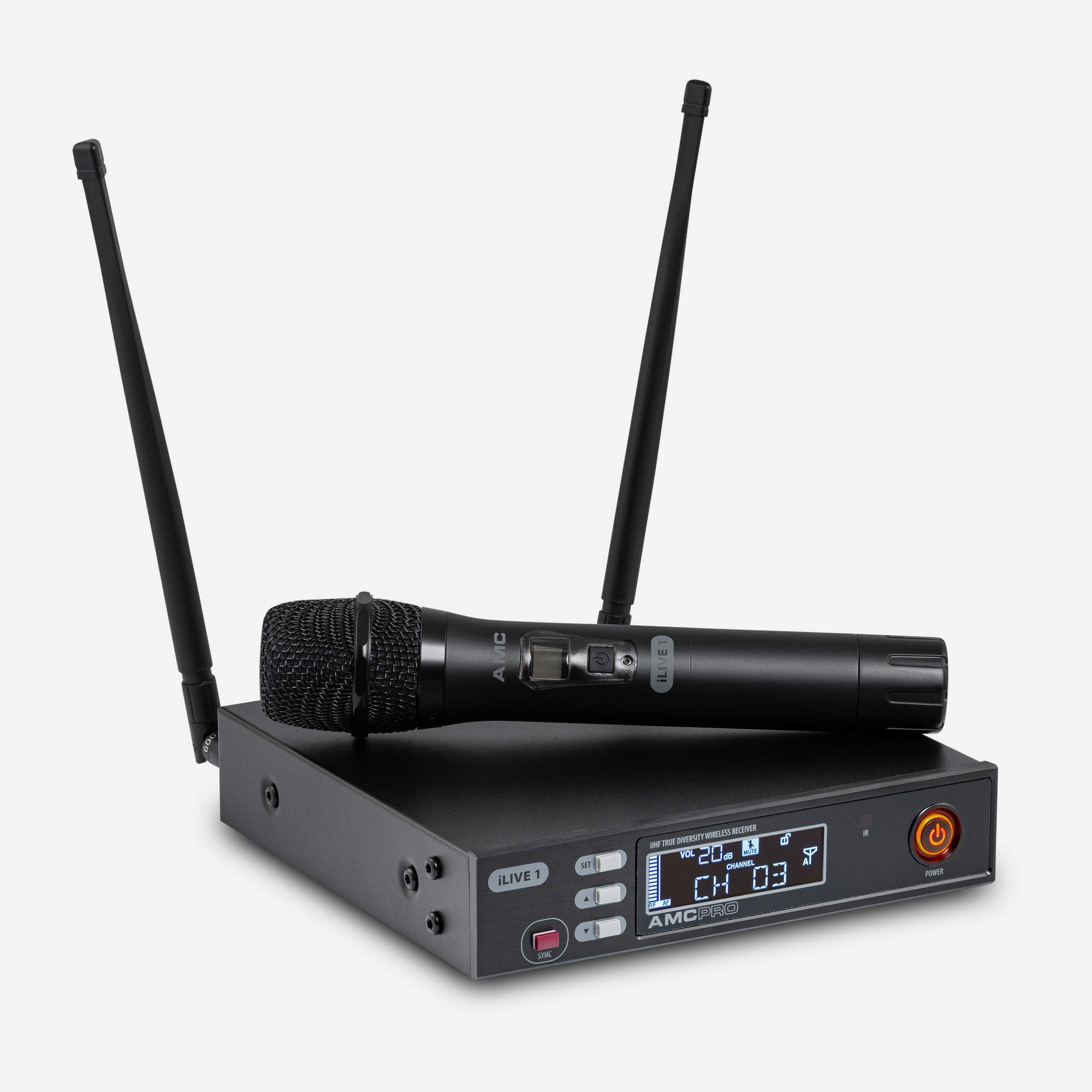 The iLive 1 Handheld Wireless Microphone System with true diversity receiver with 32 selectable channels, automatic channel synchronization and automatic frequency selection.