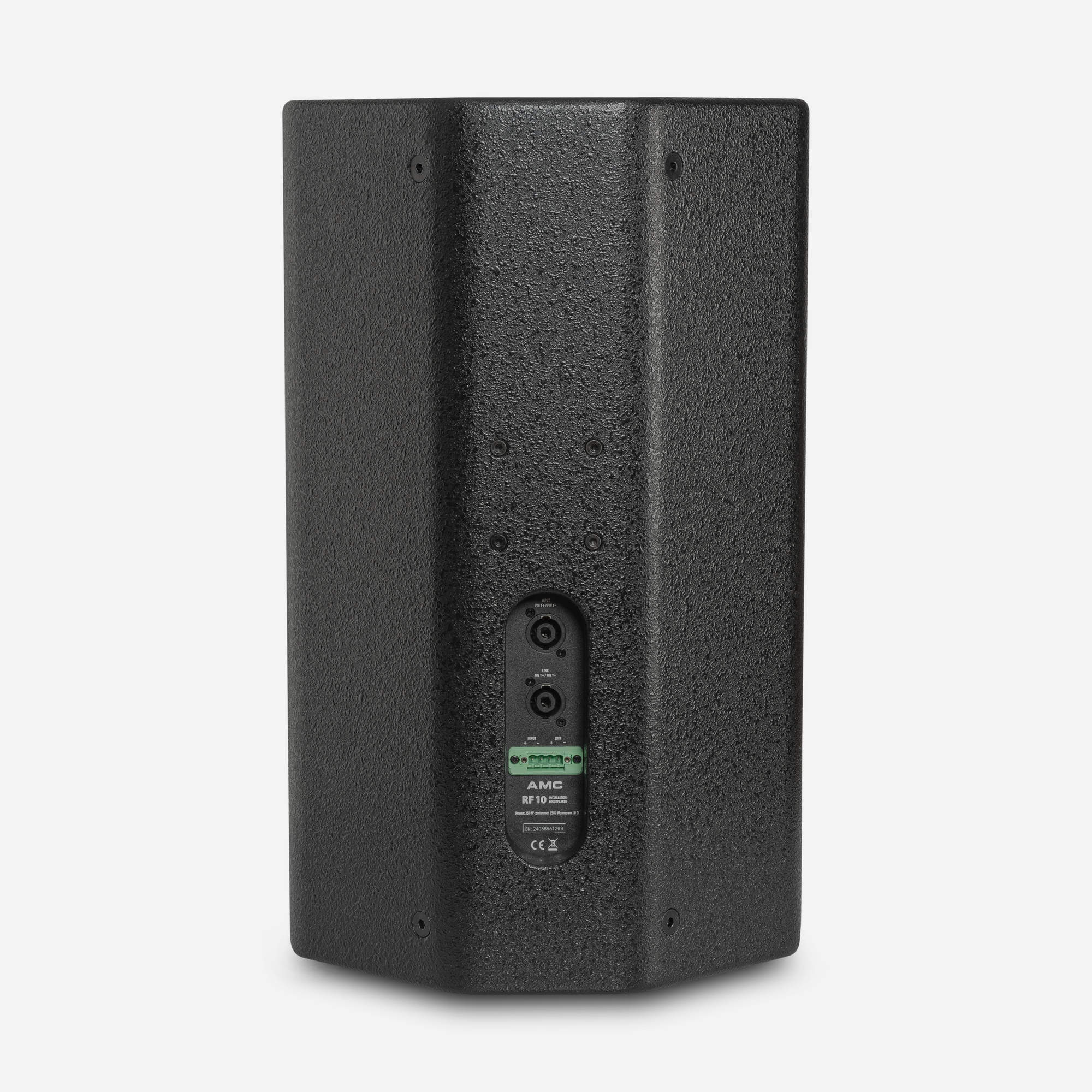The rigid cabinets are made of birch plywood with integrated hanging points. Optional mounting brackets available for horizontal and vertical mounting. The RF 6 and RF 10 speakers are produced with two-way drivers and dual connectors—SpeakON and Phoenix for universal use.