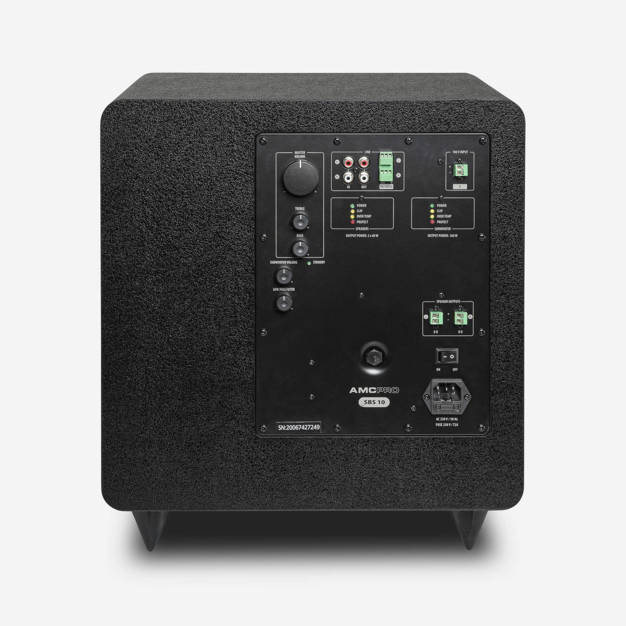 SBS 10 is active subwoofer with an integrated 160 W amplifier for the low frequency woofer and with 2 x 60 W amplifier for externally connected speakers, allowing to set up the impressive, well-balanced, and rich sound system.