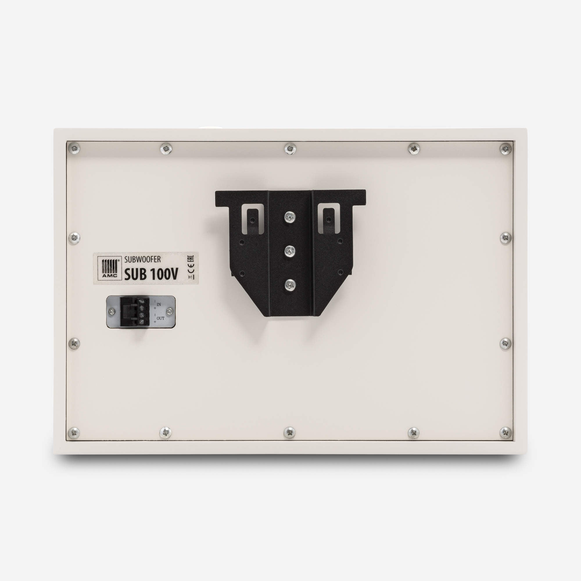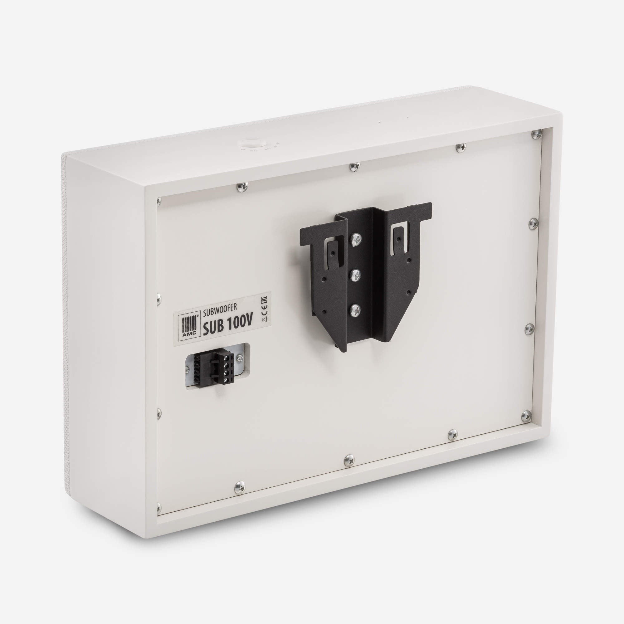 It is intended for mounting on flat surfaces such as walls or ceilings. The subwoofer has built-in high-quality 100V transformer with input power selection, allowing direct connection to 100V loudspeaker lines. Wooden cabinet with 6" woofer, low-pass filter, 100V line power selector, and a low-impedance input. SUB 100V sharply increases low-frequency performance in background music systems.