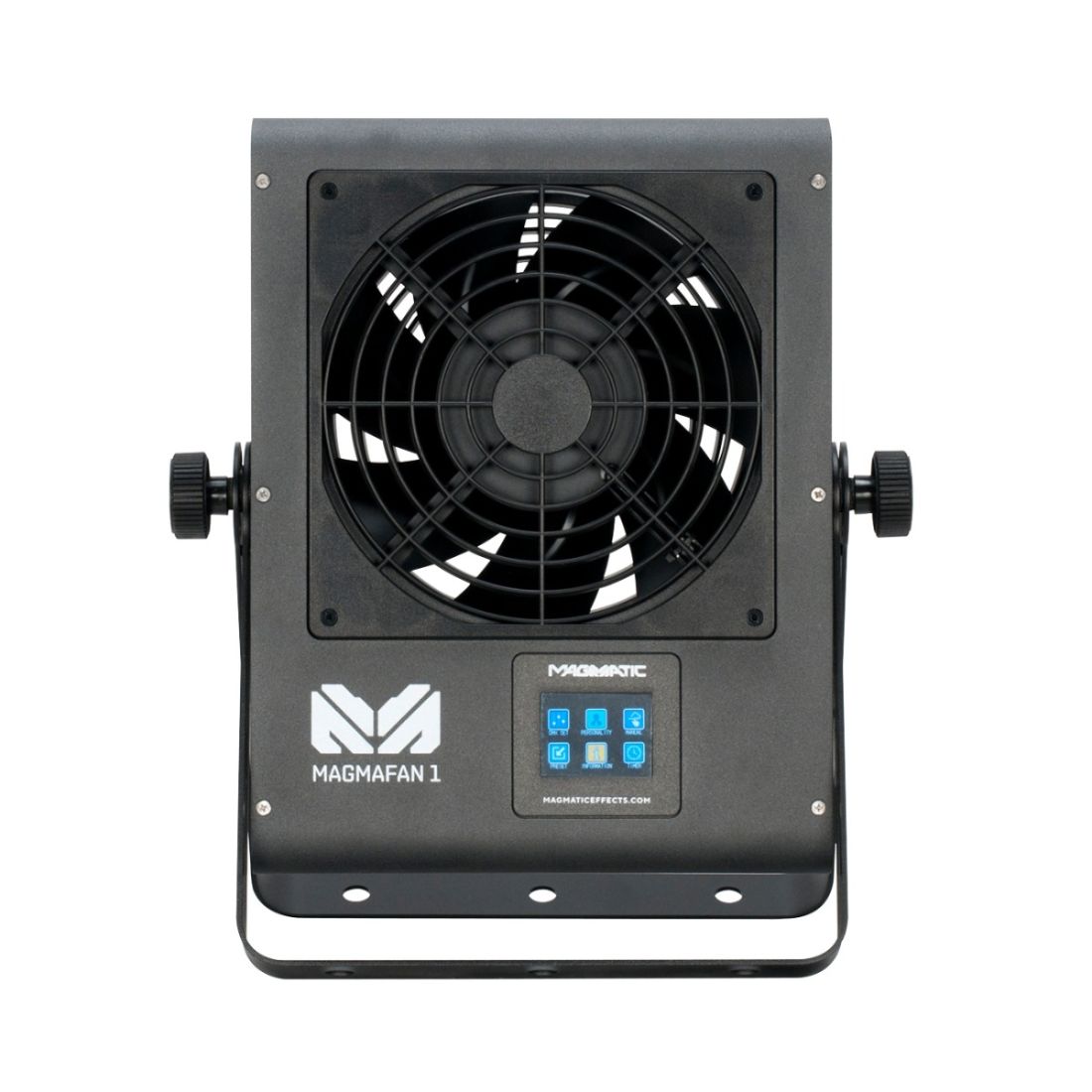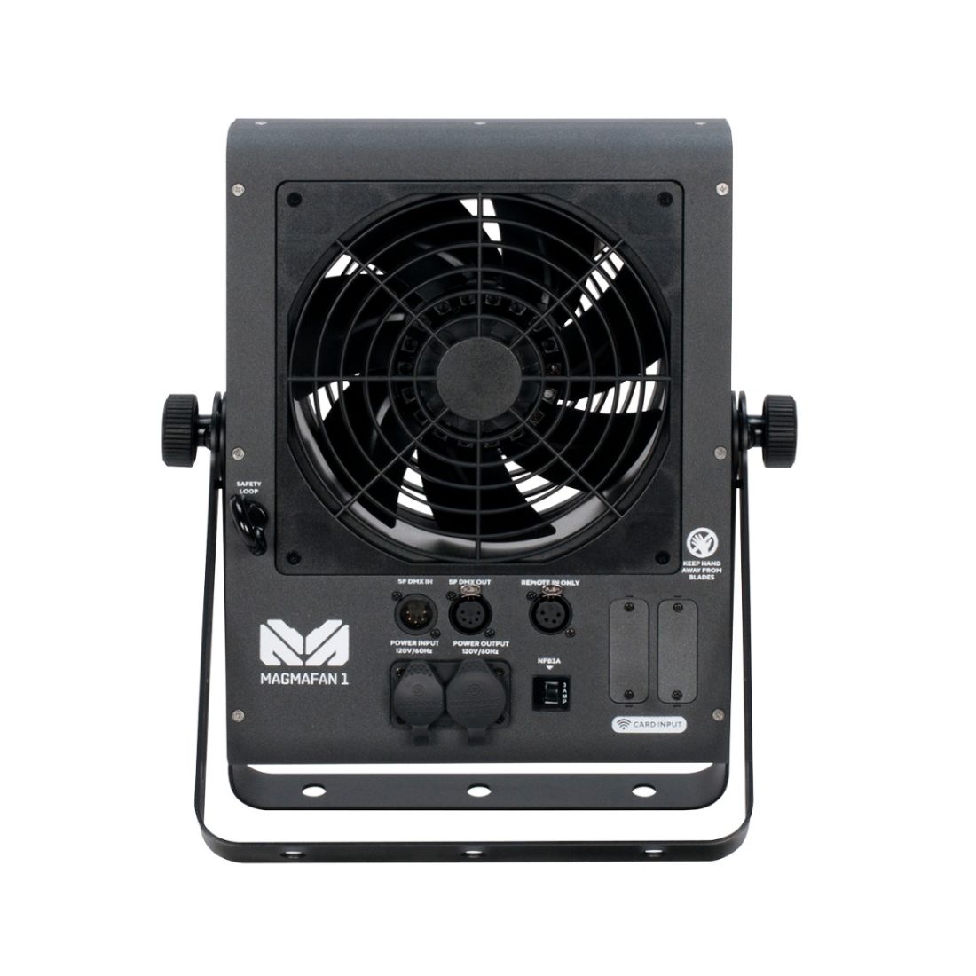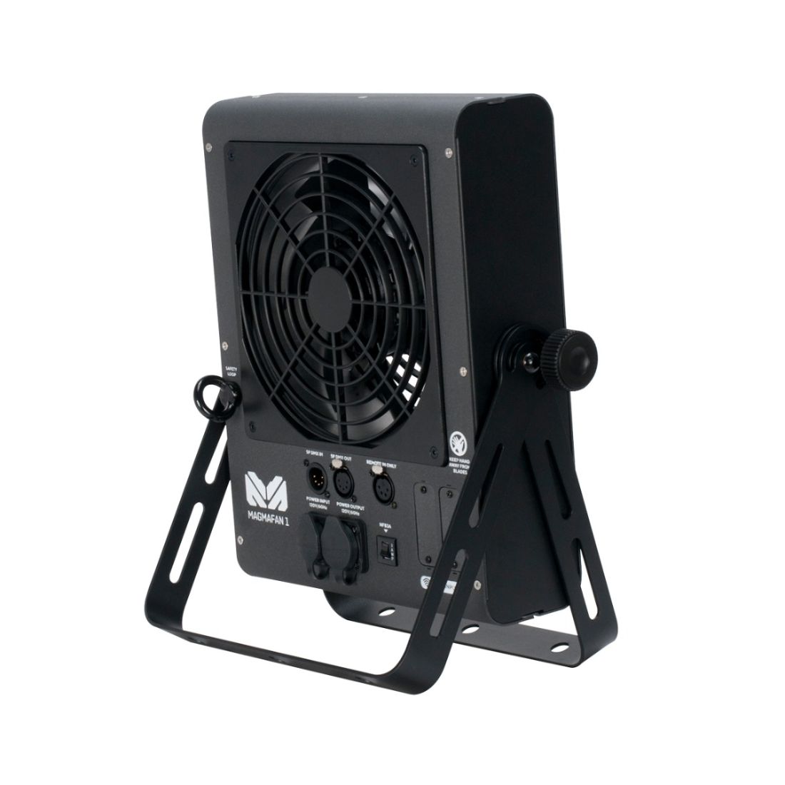 MagmaFan 1 is a compact all-purpose stage fan that features multiple control options, linear output control, low power consumption, adjustable blowing directions, and durable metal housing.