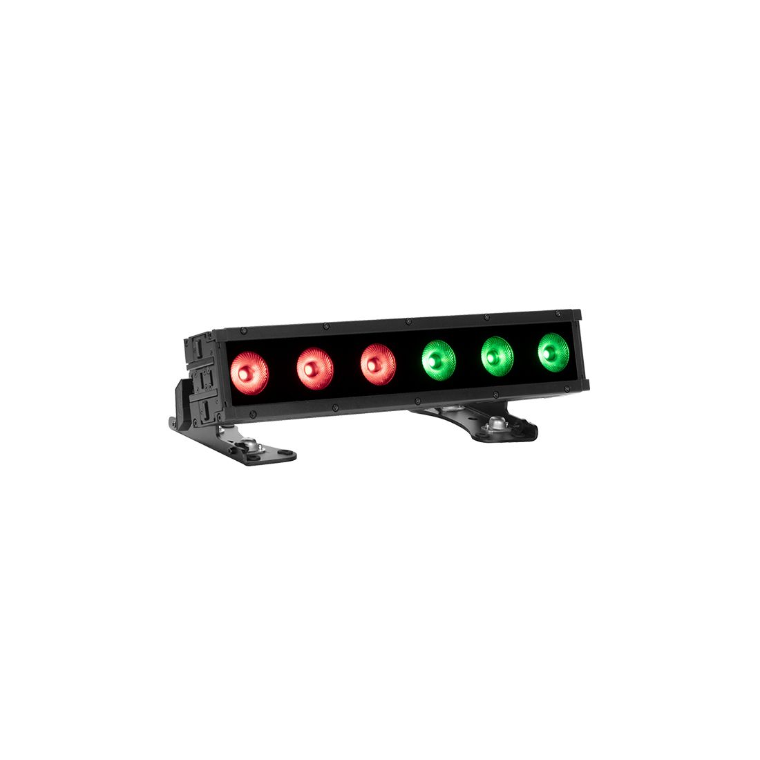 Equipped with 20W RGB+Lime+Amber+UV LEDs and boasting an impressive CRI of 90.9, the SIX+ BAR S offers a stunning array of colors, ensuring a beautifully homogenized wash of light with high-quality color reproduction. Its meticulously engineered optical system ensures even light distribution, and the proprietary RGBLA+UV engine delivers high-fidelity whites and intense primaries with homogenized color blending. Extra-large 50 mm lenses make it ideal for direct view applications and individual cell control opens up for a myriad of design possibilities.