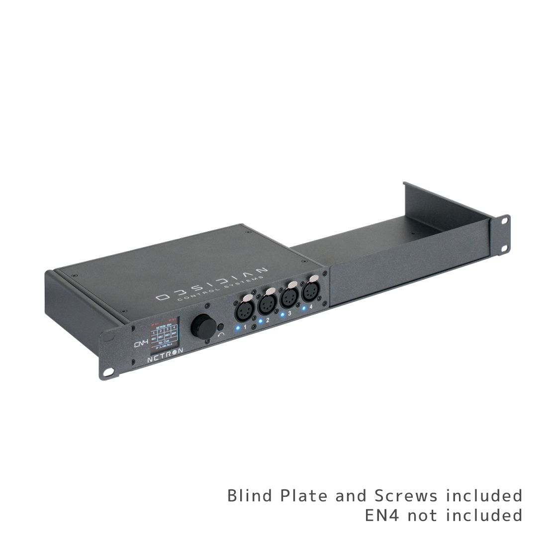 The 19" Netron rack shelf allows up to two Netron products to be mounted. It is provided with a blind plate for the install of a single product and includes all screws required for two devices.
